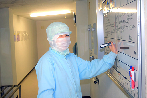 製造の記録票を確認し、退社します。