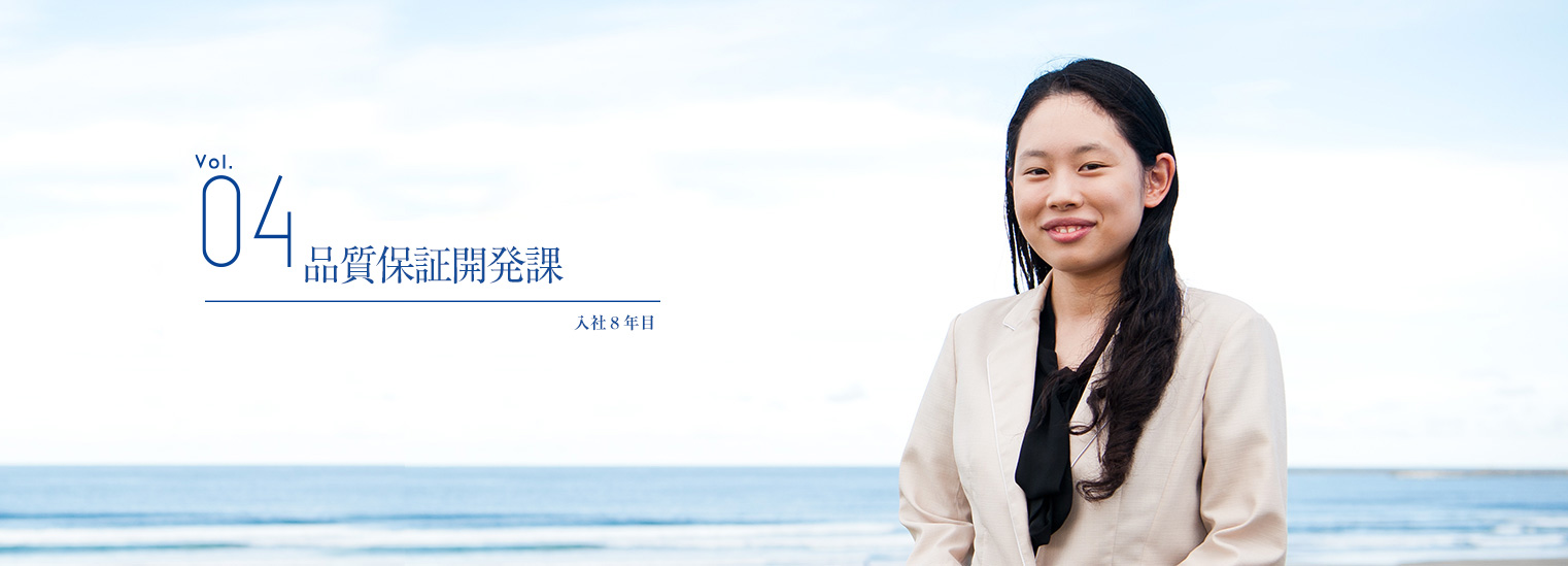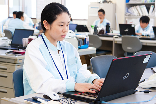 また、製造現場で改善を行う場合、製造課の皆さんを含め、多くの人と協力しながら改善を行っていきます。その際には、品質保証開発課として、「安全で安心な商品にするためには」といった目線を意識するようにしています。お客様に喜んで頂ける商品になるような改善をすることを目標としています。